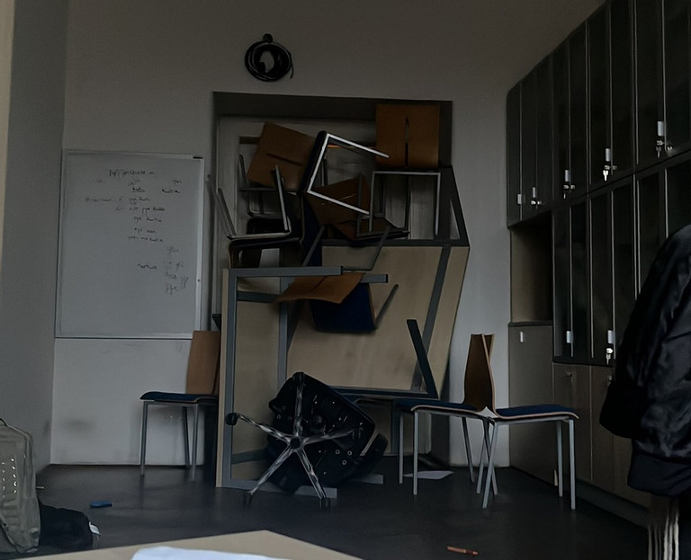 Jakob sau đó đã khóa cửa phòng, và kéo bàn ghế cùng tất cả đồ đạc có trong lớp học để làm một ‘chiến lũy’ nhỏ tại cửa ra vào.
