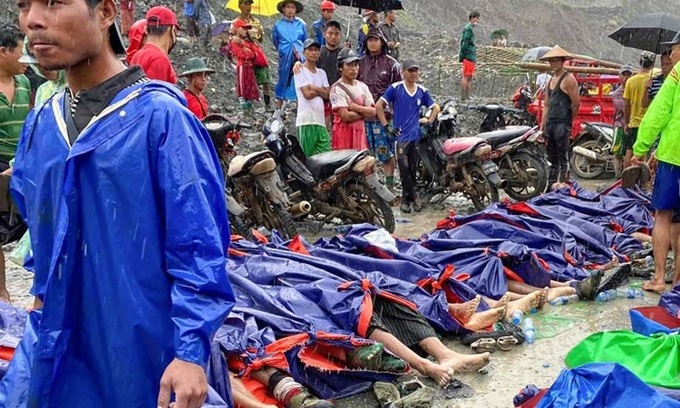 Sau những trận mưa lớn tại khu mỏ ở thị trấn Hpakant, miền bắc Myanmar, giáp biên giới Trung Quốc, bùn thải từ khai thác mỏ cao tới gần 80 mét đổ sụp xuống khu mỏ lộ thiên, ập xuống hồ nước mưa bên dưới và tạo cảnh tượng như sóng thần. Đợt sóng ào tới, nhấn chìm những thợ mỏ đang làm việc ở chân núi trong nước và bùn lầy.