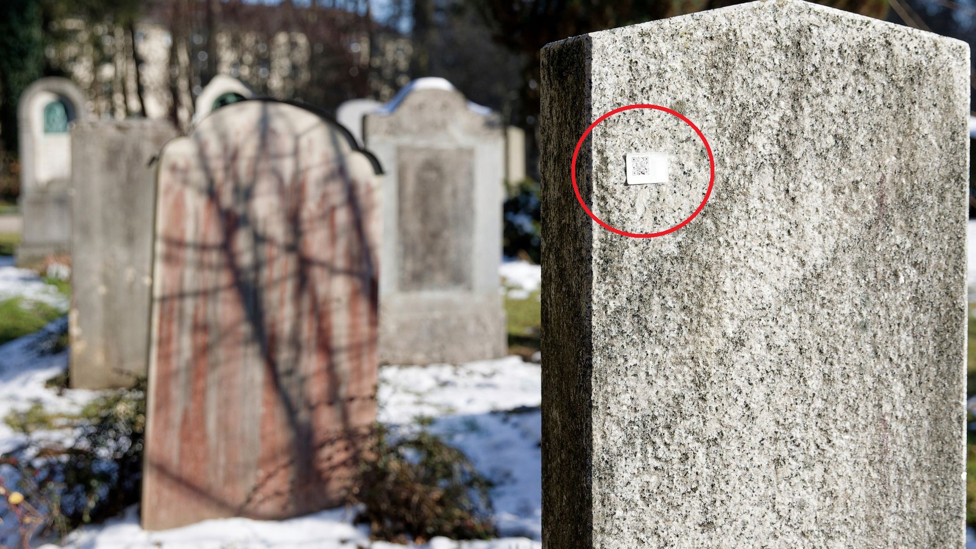 Các nhãn dán mã QR hình chữ nhật màu trắng có kích thước khoảng 5 x 3 cm bắt đầu xuất hiện vào tháng 12. Tuy nhiên chính quyền thành phố đã yêu cầu cảnh sát bắt đầu điều tra chúng như một vụ án hình sự về tội hủy hoại tài sản. Đó là bởi vì việc loại bỏ chất kết dính được đặt tại các nghĩa trang Waldfriedhof, Sendlinger Friedhof và Friedhof Solln tốn từ 104 USD đến 523 USD (2,6 đến 13,3 triệu đồng) mới bảo đảm không gây hư hại cho các ngôi mộ.