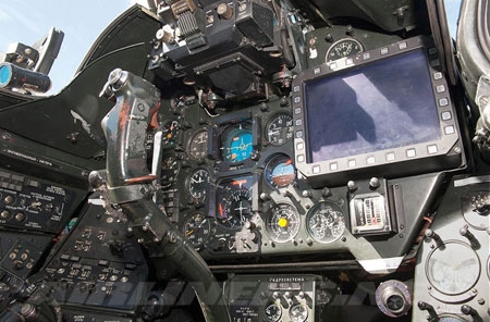 Cận cảnh khoang lái của phi công trực thăng Mi-24PN. |
