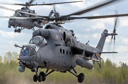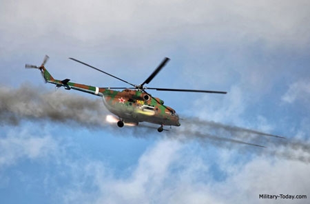 Theo ảnh vệ tinh mới nhất từ phương Tây, ngoài 28 máy bay chiến đấu phản lực, ít nhất có 10 trực thăng tấn công Mi-24PN, Mi-35M và vài chiếc Mi-8AMTSh đã được triển khai tới sân bay al-Assad, thành phố Lakatia, phía Tây Syria. Các máy bay trực thăng này đều được vũ trang hạng nặng cho phép tấn công hiệu quả phương tiện bọc thép, công sự kiên cố, hầm hào, bộ binh tập trung. |