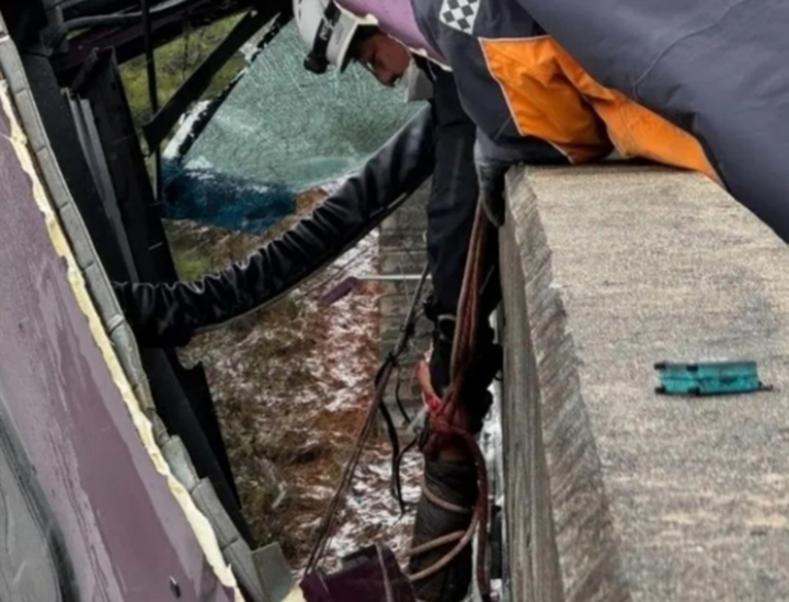 02/12/2024 21:26Nhân viên cứu hộ giữ chặt tay tài xế gặp tai nạn lơ lửng bên thành cầu suốt 45 phút