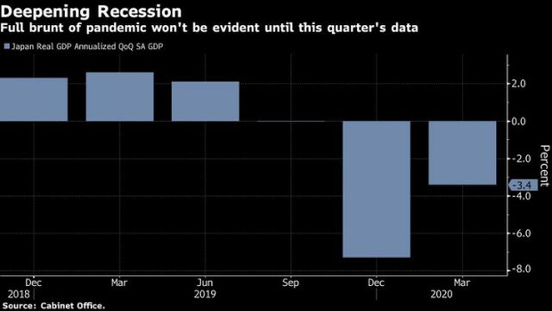 Cụ thể, GDP quý I/2020 của Nhật suy giảm 3,4% so với cùng kỳ năm trước, trong khi con số này là giảm 7,3% cho quý IV/2019. Lần cuối cùng Nhật Bản rơi vào suy thoái "kỹ thuật" như hiện nay là vào nửa cuối năm 2015.