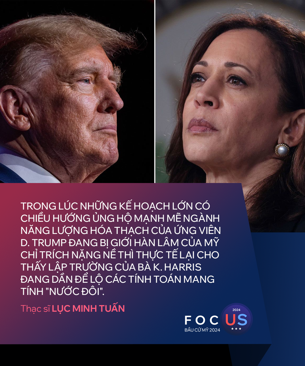 Tuy nhiên, trong lúc những kế hoạch lớn có chiều hướng ủng hộ mạnh mẽ ngành năng lượng hóa thạch của ứng viên D. Trump đang bị giới hàn lâm của Mỹ chỉ trích nặng nề rằng sẽ kéo lùi nước Mỹ đến "hàng thập kỷ", thì thực tế lại cho thấy lập trường của bà K. Harris đang dần để lộ các tính toán mang tính "nước đôi" - đứng giữa cả hai lập trường.