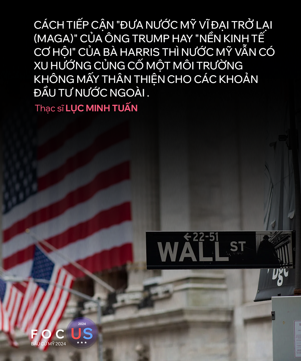 Theo viện nghiên cứu Stimson, cho dù triển khai theo cách tiếp cận "Đưa nước Mỹ vĩ đại trở lại (MAGA)" của ông Trump hay "Nền kinh tế cơ hội" của bà Harris thì nước Mỹ vẫn có xu hướng củng cố một môi trường không mấy thân thiện cho các khoản đầu tư nước ngoàivào quốc gia này.