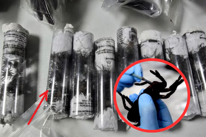 Tại sân bay, nhân viên an ninh phát hiện phần bụng của người đàn ông này "phồng lên bất thường". Sau khi kiểm tra, họ phát hiện một chiếc túi đeo bụng được thiết kế đặc biệt, bên trong chứa đầy các chai nhựa. Những chai nhựa này chứa hơn 300 con nhện góa phụ đen, ngoài ra còn nhiều con nhện Tarantula có kích thước bằng bàn tay, cùng 110 con rết độc và 9 con kiến đạn – tất cả đều được thu thập trái phép từ khu vực rừng nhiệt đới Amazon Peru. Được biết, loài nhện góa phụ đen có độc tố có thể gây hoại tử, còn loài nhện Tarantula với kích thước lớn từng được xếp vào danh sách các loài động vật có nguy cơ tuyệt chủng tại Peru.