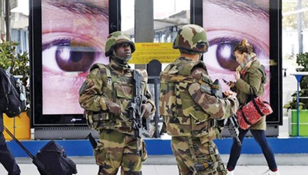 Cảnh sát canh gác ở nhà ga Austerlitz tại Paris. Ảnh: Getty Images |