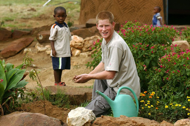 Tháng 3/2004: Hoàng tử Harry, 19 tuổi, cùng một đứa trẻ mồ côi tại Trại trẻ Mants'ase ở miền Nam châu Phi.