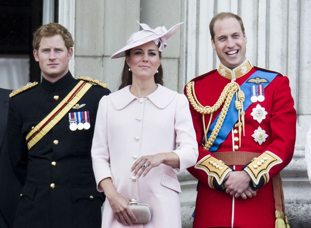 Tháng 6/2013: Hoàng tử Harry, 28 tuổi, Công nương Kate Middleton và Hoàng tử William tham dự lễ sinh nhật hàng năm của Nữ hoàng Anh