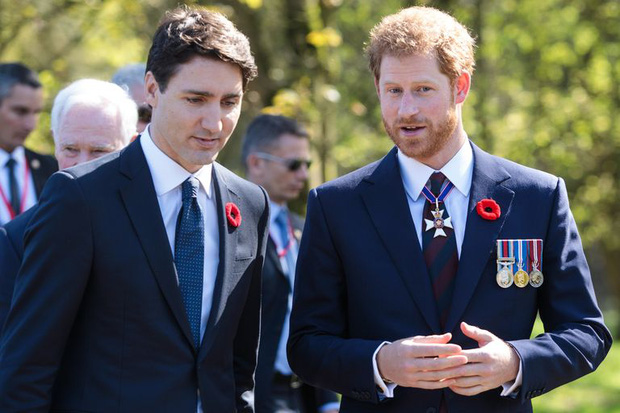 Tháng 4/2017: Thủ tướng Canada Justin Trudeau và Hoàng tử Harry, 32 tuổi, trò chuyện trong lễ kỷ niệm tại Đài tưởng niệm quốc gia Vimy, Canada.
