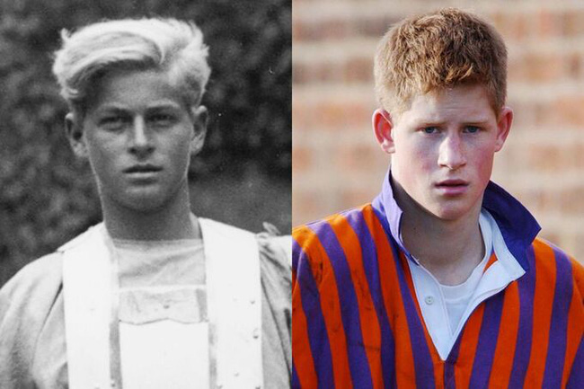 Hoàng tế Philip ở Scotland năm 1935 và Hoàng tử Harry khi còn đi học tại trường Cao đẳng Eton, vào tháng 11/2001.