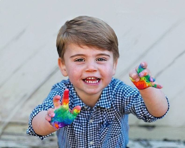 Vào hồi tháng 4 vừa qua, Hoàng gia Anh đã công bố bộ ảnh mới nhân dịp sinh nhật tròn 2 tuổi của Hoàng tử út Louis. Tấm hình chụp bàn tay dính đầy sơn kèm theo nụ cười tinh nghịch, Hoàng tử Louis trông rất vui vẻ với thành quả nghệ thuật của mình, nằm trong bộ ảnh này và nhận được nhiều lượt thích nhất.