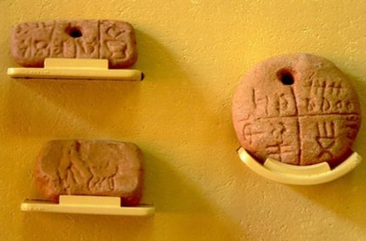 Còn đây là 3 viên đất sét được tìm thấy tại một ngôi làng ở Rumani, có niên đại cách đây 5.500 - 4.500 TCN, trên đó có các kí tự kì lạ. Nhiều khả năng, đây là một loại chữ viết cổ, nhưng các nhà khoa học chưa dám khẳng định.