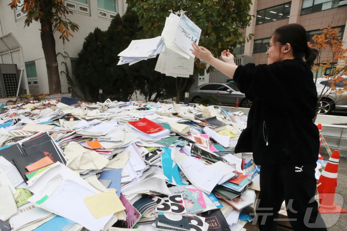 Và một trong những hành động đơn giản nhất chính là vứt bỏ toàn bộ các cuốn sách ôn luyện cho kỳ thi này. Hình ảnh cả một “núi” sách vở bị vứt đi chất đống phía sau bãi đậu xe của một trung tâm luyện thi Đại học ở Seoul sau kỳ thi đã khiến nhiều người không khỏi choáng váng.