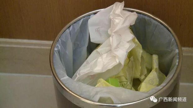 Cô Lữ nói: "Tôi vẫn dọn dẹp như thường lệ, cho đến khi tôi lấy ấm đun nước và tính vệ sinh lại thì phát hiện bên trong là miếng băng vệ sinh đã qua sử dụng, chiếc bao bên ngoài vẫn nằm trong thùng rác".