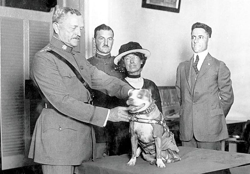 Ai có thể ngờ một chú cún con đi lạc, được lén lút đưa lên tàu ra mặt trận vào năm 1918, lại trở thành anh hùng thời chiến, là con vật đầu tiên được phong trung sĩ và được tăng đến 14 huân chương, nhiều huân chương nhất trong Chiến tranh thế giới thứ nhất.