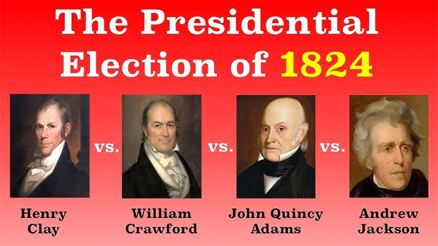 Các cuộc bỏ phiếu diễn ra từ ngày 26/10 - 1/12/1824 với 4 ứng cử viên chính là Thượng nghị sĩ Andrew Jackson, Ngoại trưởng John Quincy Adams, Chủ tịch Hạ viện Henry Clay và Bộ trưởng Tài chính William Crawford đều thuộc đảng Dân chủ - Cộng hòa. Ứng viên Jackson lần lượt giành được 153.544 phiếu phổ thông và 99 phiếu đại cử tri, đều cao hơn cả 3 đối thủ còn lại. Ông Adams về nhì với 84 phiếu đại cử tri, ông Crawford và ông Clay lần lượt xếp thứ 3 và thứ 4 với 41 phiếu đại cử tri và 37 phiếu đại cử tri.