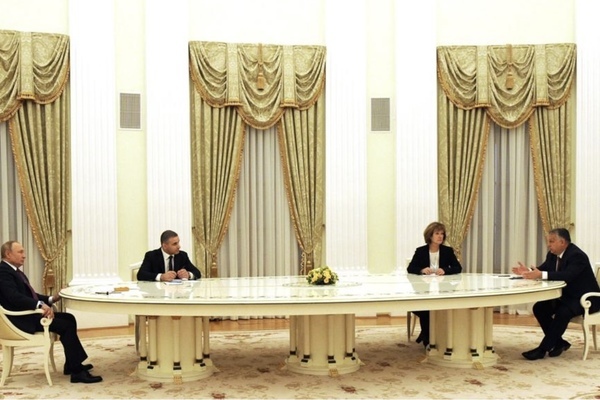 Chiếc bàn quá khổ xuất hiện lần đầu tiên trong cuộc gặp ngày 1/2 giữa Tổng thống Putin và Thủ tướng Hungary Viktor Orban.
