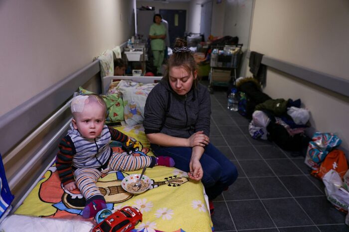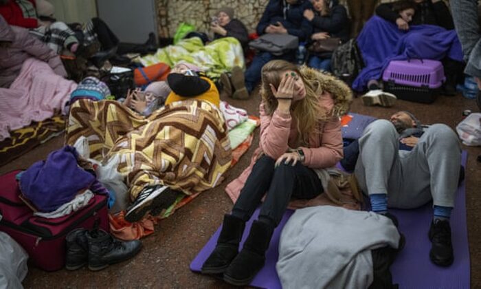Khi bom và pháo dội xuống thủ đô vào đêm 25/2, hàng ngàn người tập trung trong các ga tàu điện ngầm, tầng hầm và hầm trú bom, nhiều người đi cùng với trẻ em, mang theo túi ngủ, đồ đạc và thú bông. “Những đứa trẻ sợ hãi, chúng khóc và hỏi 'Mẹ ơi, chúng ta sẽ chết sao? '”, Alla, một phụ nữ khoảng 40 tuổi, nói trong hầm trú ẩn ở Kiev.
