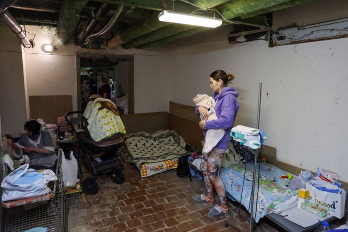 Những đứa trẻ sơ sinh cũng được chuyển tới hầm trú bom tạm thời ở một đơn vị chăm sóc đặc biệt dành cho trẻ sơ sinh của một bệnh viện nhi tại Dnipro, miền đông Ukraine. Bác sĩ Denis Surkov, trưởng đơn vị sơ sinh tại bệnh viện nhi Dnipropetrovsk Oblast, nói: “Đây là thực tế của chúng ta”.