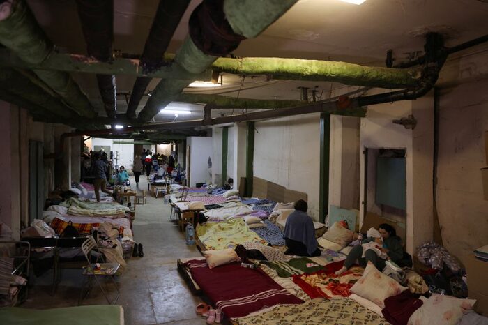 Tầng hầm nơi cô trú ẩn chật ních hàng trăm người, không có chỗ ngủ, chỉ có ghế và một ít nước. Ngay cả việc tìm một chỗ để ngồi cũng khó. “Chúng tôi không biết mình phải ở đây bao lâu. Tốt thôi, ít nhất chúng tôi cũng có ghế”, Viktoria, 35 tuổi, nói trong khi các con của cô chỉ 5 và 7 tuổi, đã ngủ, mặc nguyên áo khoác mùa đông.