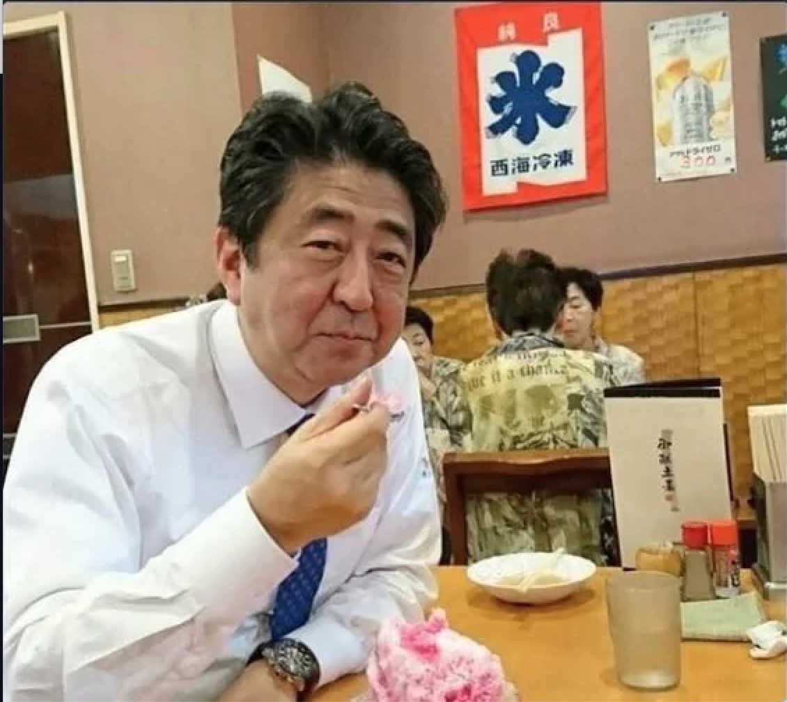 Một trong những hình ảnh được nhiều người Nhật nhớ đến là bài đăng của ông trên Twitter: “Tôi đang ăn đá bào ở quê mình. Mùa hè thực sự đã đến".