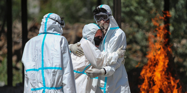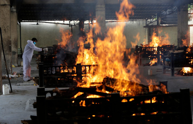 Bên trong lễ hỏa táng hàng loạt nạn nhân COVID-19, ở New Delhi, Ấn Độ, 24/4/2021, nước mắt và nỗi đau thấu tận tâm can