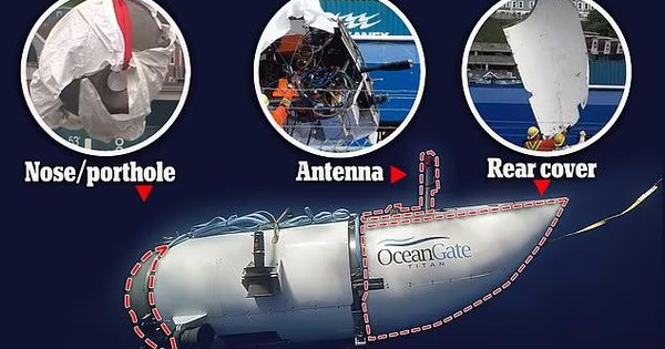 Theo Daily Mail, một số phần có thể xác định được của tàu lặn Titan đã được đưa lên bờ từ hôm 27-6, bao gồm mũi tàu và một mảnh lớn dường như thuộc về phần thân sau của tàu.
