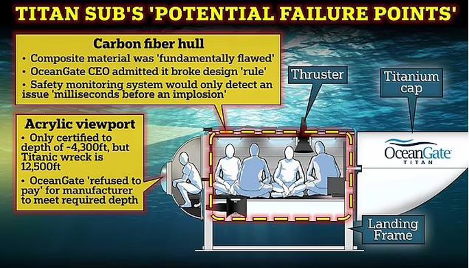 Các mảnh vỡ lớn bằng titan được tìm thấy một lần nữa gợi ý đến nghi ngờ trước đây của nhiều chuyên gia rằng chính những phần làm bằng sợi carbon của tàu lặn Titan đã dẫn đến thảm họa.