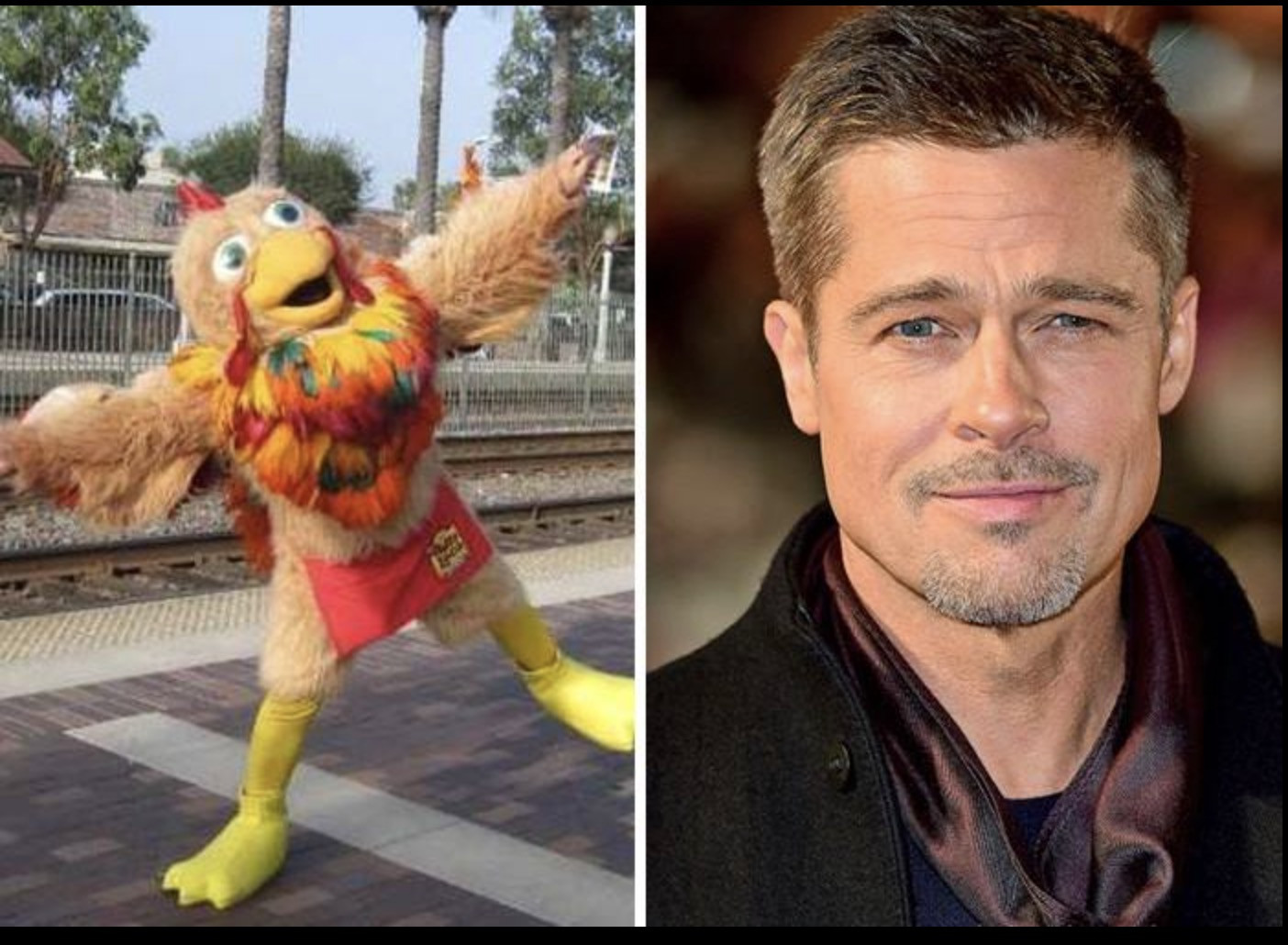 Brad Pitt cho hay, trước khi thành danh trên màn ảnh với tư cách một diễn viên nổi tiếng, ông từng mặc trang phục của một chú gà trong lễ khai trương của chuỗi cửa hàng thức ăn nhanh El Pollo Loco tại Sunset và La Brea ở Los Angeles và ông không thấy xấu hổ gì về công việc đó.