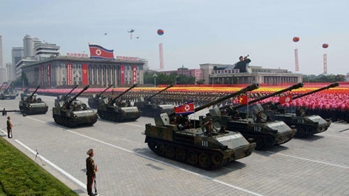 | Pháo tự hành Triều Tiên trong một cuộc diễu binh ở Bình Nhưỡng. |