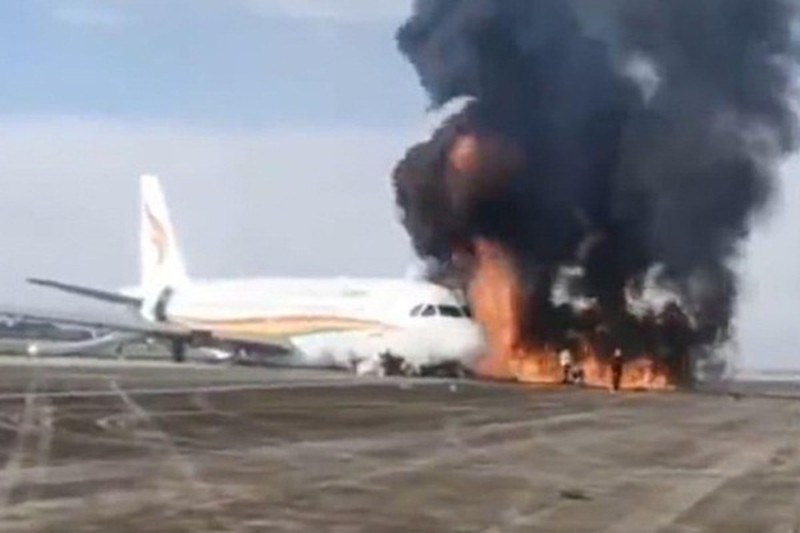 Máy bay Trung Quốc bốc cháy dữ dội trước khi cất cánh