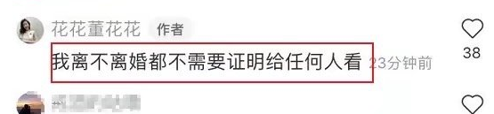 Đổng Hoa Hoa cũng không ngần ngại để lại bình luận trả lời: "Tôi ly hôn hay không ly hôn đều không cần thiết phải chứng minh cho bất kỳ ai". Không ít người cho rằng bình luận này có hàm ý: Tôi đã ly hôn nhưng không cần thiết phải công khai thông tin đó.