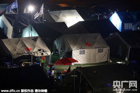 Các nhân viên y tế túc trực trong các trạm cứu trợ tạm thời để tiếp nhận và sơ cứu cho những người bị thương. Bệnh viện trong thành phố đều quá tải vì số lượng nạn nhân đổ về rất đông. Nhiều người phải ngồi và nằm chờ dưới sàn trước khi được các bác sĩ điều trị. |