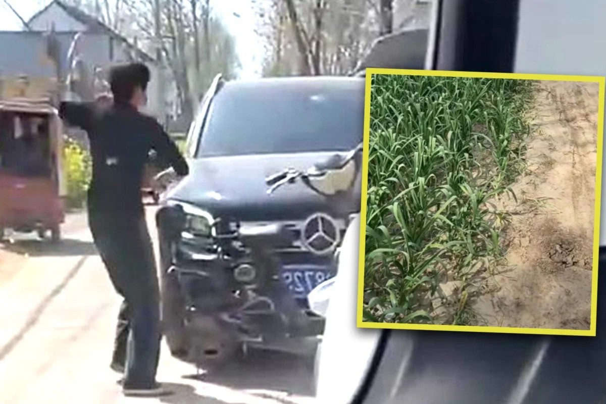 Vụ việc xảy ra hôm 05/04 tại huyện Thái Khang, tỉnh Hà Nam (Trung Quốc). Tài xế họ Trương lái xe trên đường hẹp ở nông thôn, cán lên mầm tỏi được trồng ở ven đường, theo Đài Truyền hình Hà Nam.