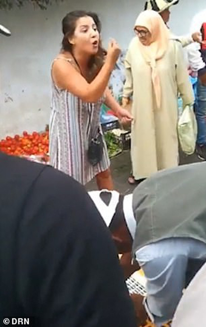 Không chỉ cắn, xô đẩy người bán hàng, cô gái này còn sử dụng không ít những lời lẽ khiếm nhã với người bán hàng và thậm chí, cô này còn tỏ ý khinh thường người dân Morocco và gọi họ là "những đứa vô học" trong khu chợ ở Tangier.