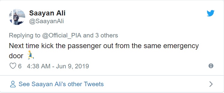 Đại diện của hãng Hàng không Quốc gia Pakistan từ chối đưa ra bình luận về vụ việc. Tuy nhiên, có một người dùng Twitter đã đưa ra giải pháp thích đáng cho tình huống này: