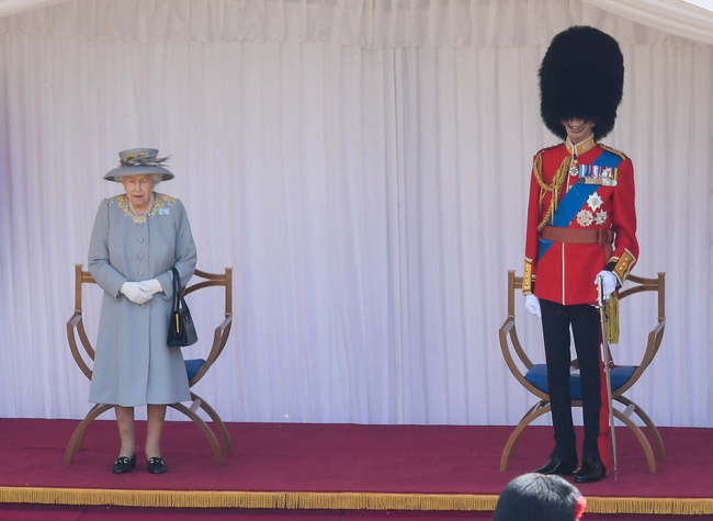 Vào ngày 12/6, Nữ hoàng Anh tiếp tục xuất hiện trên truyền thông khi bà tổ chức sinh nhật chính thức của mình tại Lâu đài Windsor với màn biểu diễn Trooping the Colour phiên bản "mini" do ảnh hưởng của đại dịch Covid-19. Tháp tùng Nữ hoàng Anh trong sự kiện này là Công tước xứ Kent, Đại tá của Lực lượng Vệ binh Scots. Nữ hoàng Anh mặc bộ trang phục sang trọng cùng chiếc mũ đồng màu và giữ thần sắc tươi tắn.