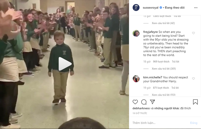 "Anh nên tôn trọng bà nội của mình, Harry à"; "Khi nào anh mới có thể bắt đầu sự tử tế của mình? Hãy bắt đầu với người bà 90 tuổi của mình, sau đó là người đàn ông 76 tuổi (cha đẻ Meghan) rồi hãy rao giảng cho người khác",... một số ý kiến bình luận của người dùng mạng Instagram.