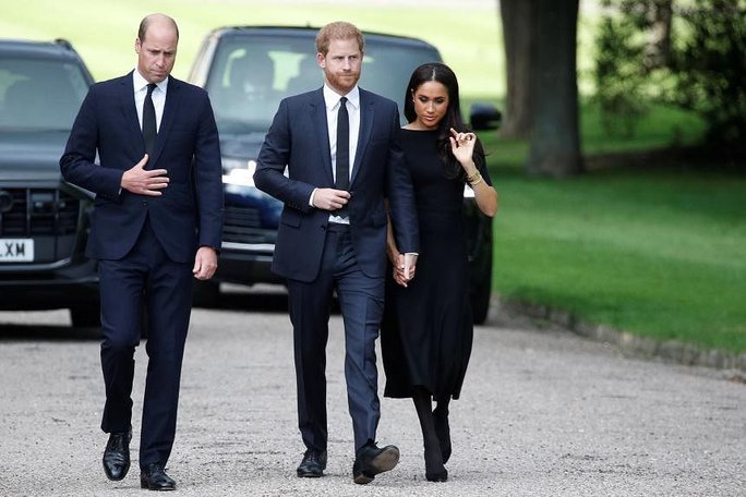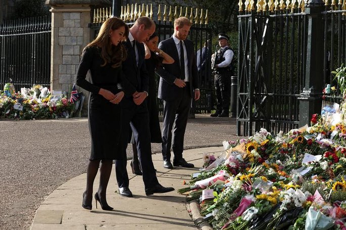 Hoàng tử William cùng công nương Kate và Hoàng tử Harry cùng vợ Meghan Markle xuất hiện bên ngoài lâu đài Windsor ngày 10-9. Hãng tin Reuters dẫn nguồn tin hoàng gia mô tả đây là dịp thể hiện sự đoàn kết của gia đình vào thời khắc khó khăn này, sau khi Nữ hoàng Elizabeth II qua đời.