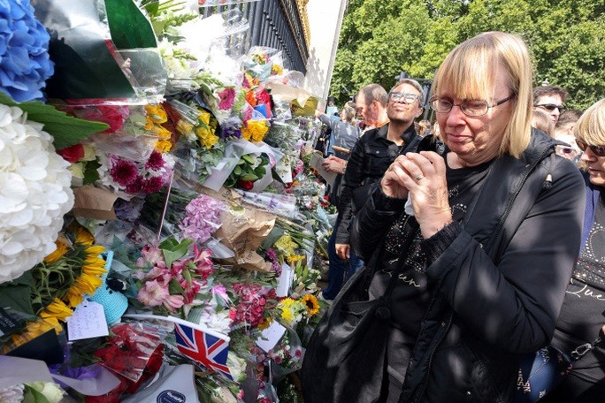 Người Anh đã đặt hàng ngàn bó hoa ở hàng rào Điện Buckingham và trong công viên, cùng với những thông điệp viết tay đầy cảm động, gấu bông Paddington, bóng bay và thiệp chia buồn.
