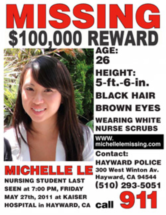 Được biết, trước khi bị mất tích, Michelle Le có tâm sự với bạn bè rằng sau khi hết ca trực cô sẽ gặp một người bạn trong quán cà phê gần bệnh viện, sau đó sẽ đi chơi trong 2 ngày nghỉ cuối tuần. Khi không thấy Michelle Le trở về để tiếp tục ca trực cũng như không thấy xe hơi của nữ sinh viên này ở bãi xe, bạn bè cô đã nhanh chóng đi trình báo cảnh sát.