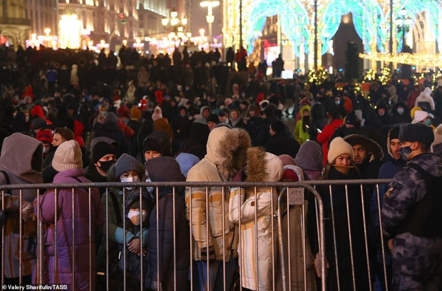 Trong khi đó ở Nga, bất chấp dịch bệnh đang rất phức tạp, người dân vẫn đổ ra đường để đón chào khoảnh khắc chuyển giao năm mới