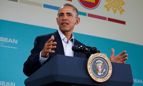 Tổng thống Mỹ Barack Obama phát biểu tại cuộc họp báo sau khi hội nghị cấp cao Mỹ - ASEAN kết thúc ngày 16/2. Ảnh: Reuters. |