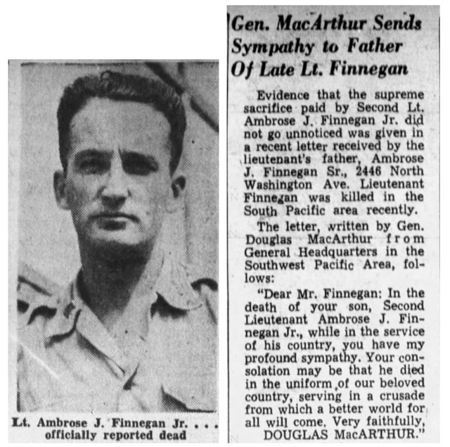 Cơ quan kiểm kê tù binh, người mất tích (POW/MIA) của Bộ Quốc phòng Mỹ cho biết, máy bay của Ambrose Finnegan đang hướng tới New Guinea trên một chuyến bay chuyển phát nhanh và "buộc phải hạ cánh xuống biển" ngoài khơi bờ biển của hòn đảo mà "không rõ lý do".