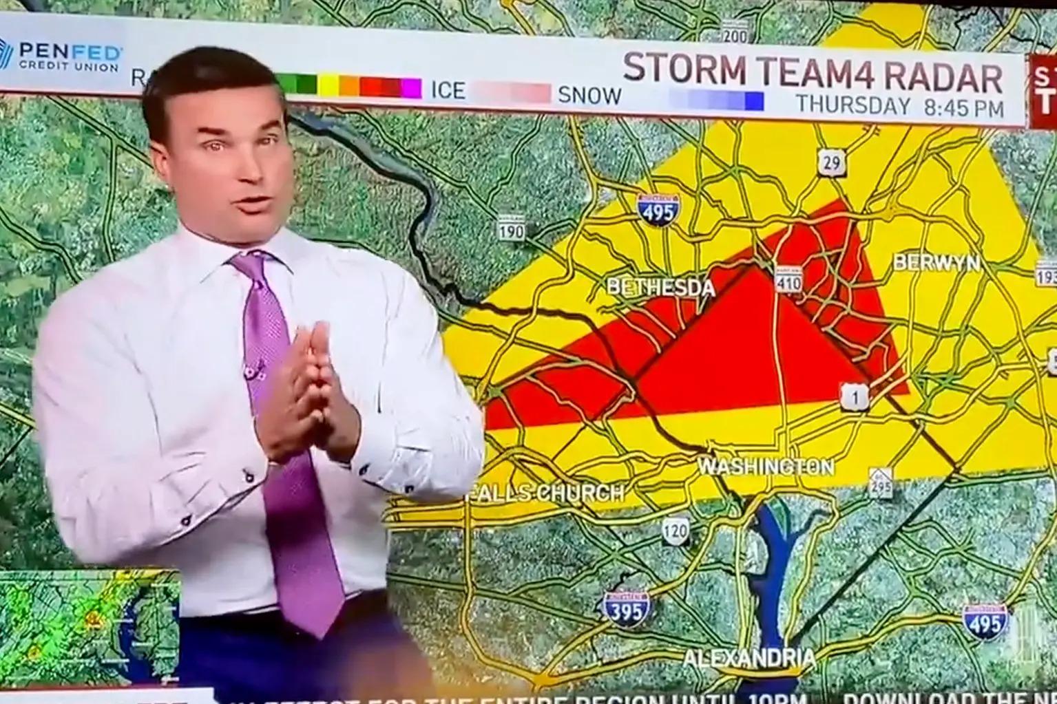 "Thực ra tôi đang theo dõi rất chặt chẽ cơn bão này vì nó sẽ đi qua nhà tôi", Kammerer vừa nói vừa phóng to khu vực Chevy Chase của Maryland, nơi đang được cảnh báo lốc xoáy.