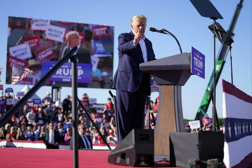 Những mối đe dọa pháp lý treo lơ lửng đối với cựu tổng thống đã hiện lên trong tâm trí của một số người tham dự, nhiều người trong số đó giơ bảng ghi chữ "săn phù thủy".