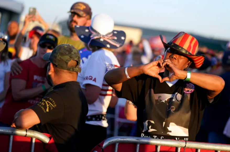 Vài ngàn người ủng hộ ông Trump đã xếp hàng bên ngoài sân bay để chờ kiểm tra an ninh. Giống như nhiều người khác tại cuộc mít tinh, bà Laurie Hansen (57 tuổi) bác bỏ thông tin cho rằng ông Trump có thể bị truy tố vì cáo buộc ông trả tiền bịt miệng, tích trữ tài liệu tuyệt mật, "ủ mưu" lật đổ kết quả bầu cử năm 2020.