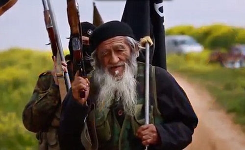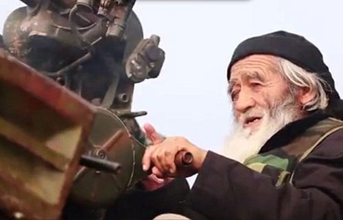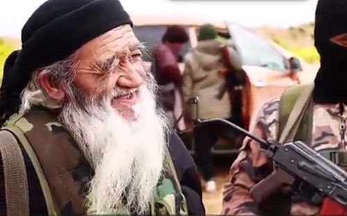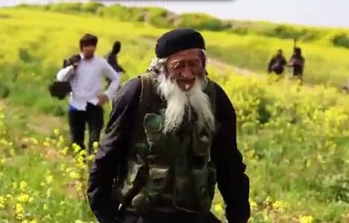 | Muhammed Amin, ông lão ở độ tuổi bát tuần, từng sống ở khu tự trị Tân Cương, Trung Quốc. Ông ta đầu quân cho IS sau khi con trai, một phiến quân Hồi giáo, mất mạng ở Syria. IS vừa công bố hình ảnh Amin mang súng trường tấn công. |