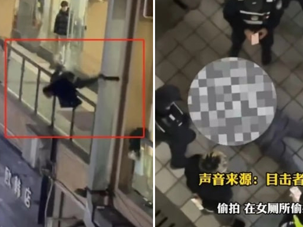 Phát hiện mình bị quay lén trong nhà vệ sinh, cô gái nhanh chóng cầu cứu bạn trai. Thủ phạm trong lúc bỏ chạy đã bị ngã từ tầng 2 xuống đất.
